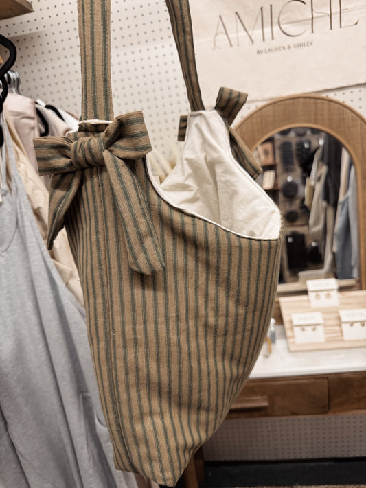 green striped bow tote bag