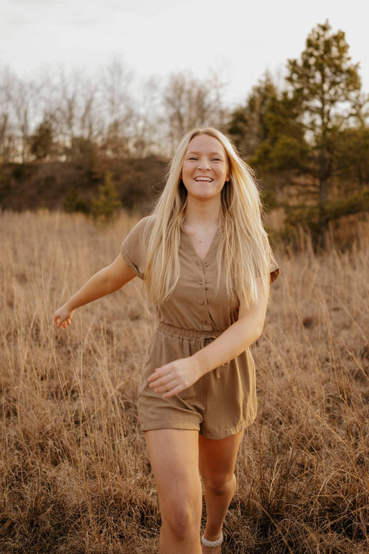 khaki button romper