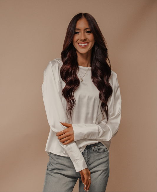 satin button back long sleeve