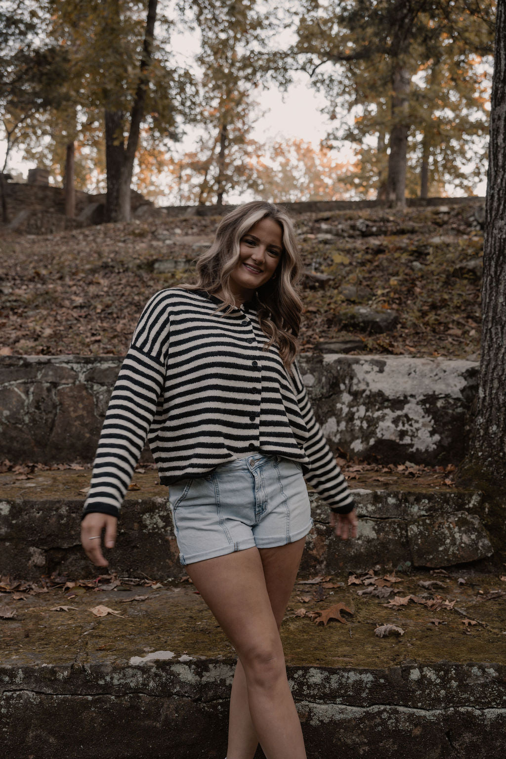 black & white striped button down cardigan